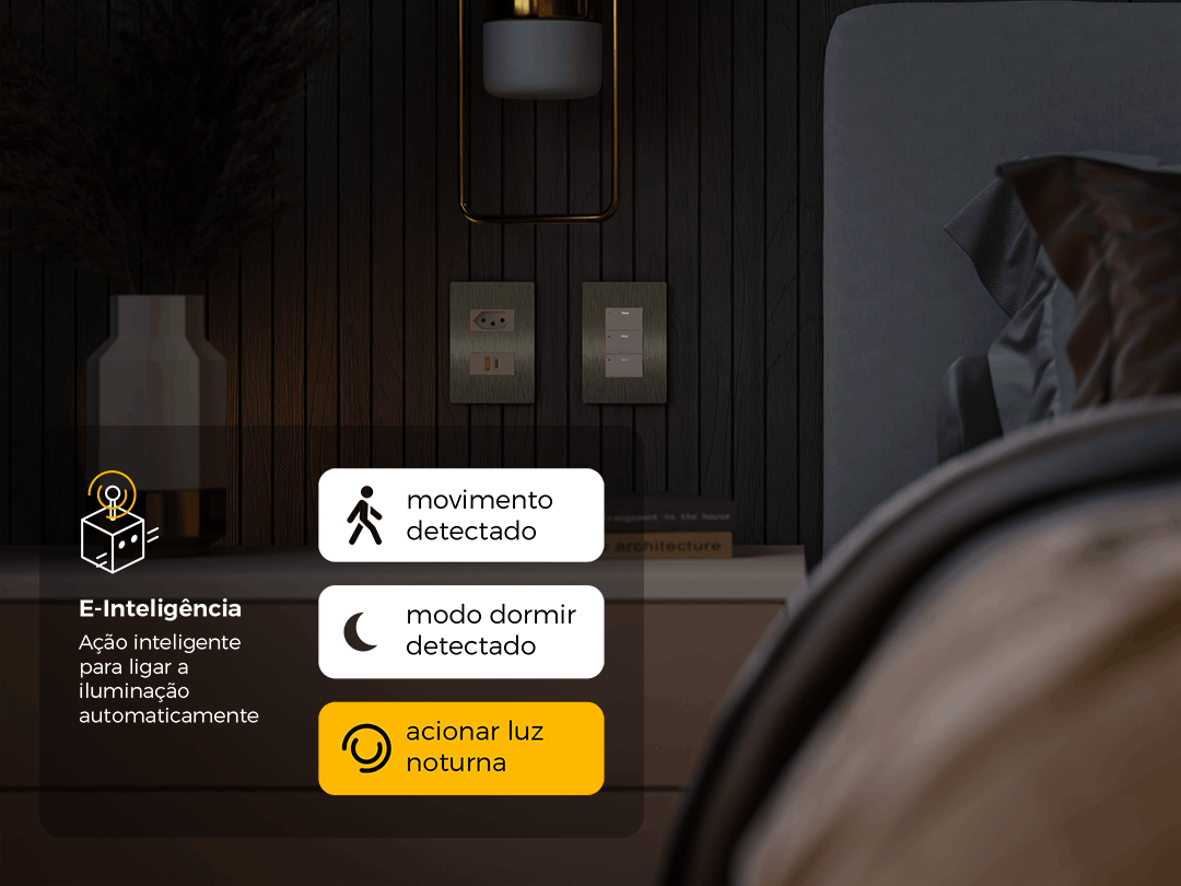 Se você se levantar durante a noite, a Inteligência Embrace acende uma luz suave, reconhecendo o horário e evitando incômodos. Isso garante que seu descanso não seja interrompido por uma iluminação intensa.