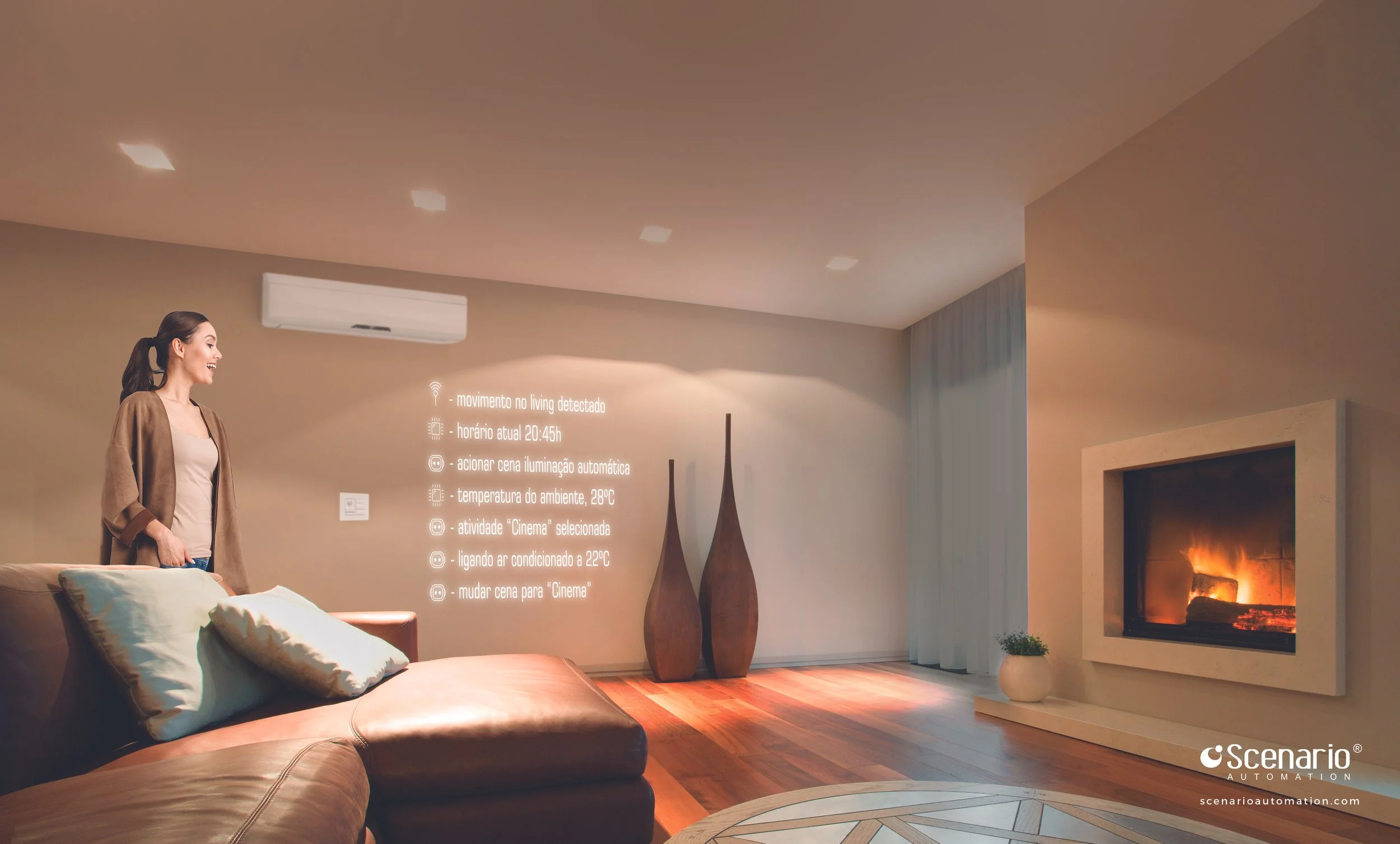 Ao sair de casa, a Inteligência Embrace detecta sua ausência e desliga automaticamente luzes e ar-condicionado, promovendo eficiência, sustentabilidade e ajudando a reduzir custos desnecessários com energia.