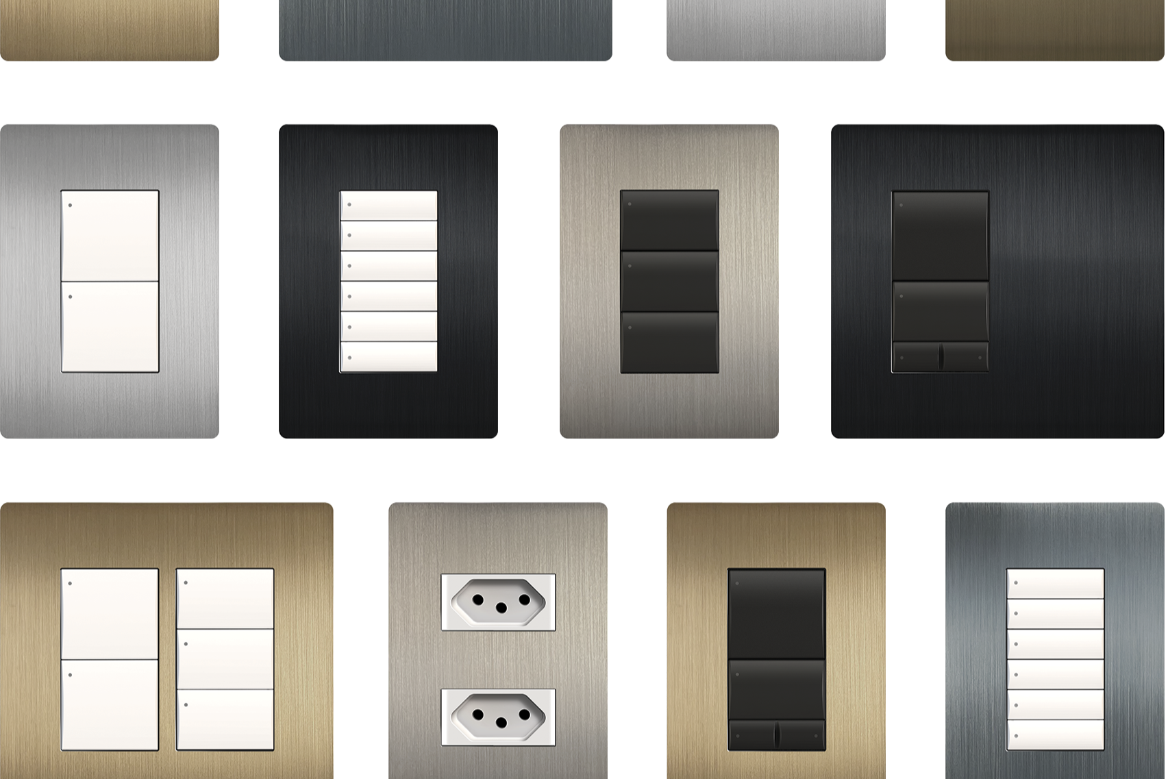 Espelhos de acabamento em diversas cores e tamanhos (4x2 e 4x4), com uma ou duas aberturas, para combinar com a sua decoração.